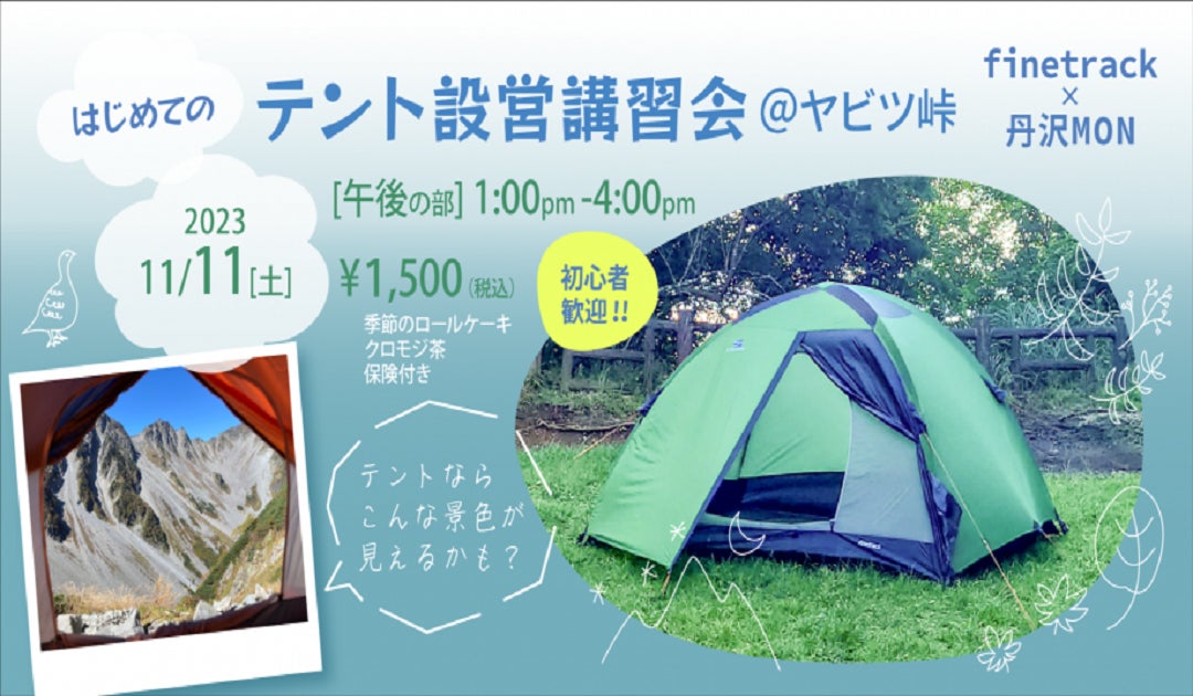 株式会社finetrackのプレスリリース(2023年11月1日 11時00分)【2023年11月11日(土)】ファイントラック×丹沢MONのコラボイベント「はじめてのテント設営講習会@ヤビツ...